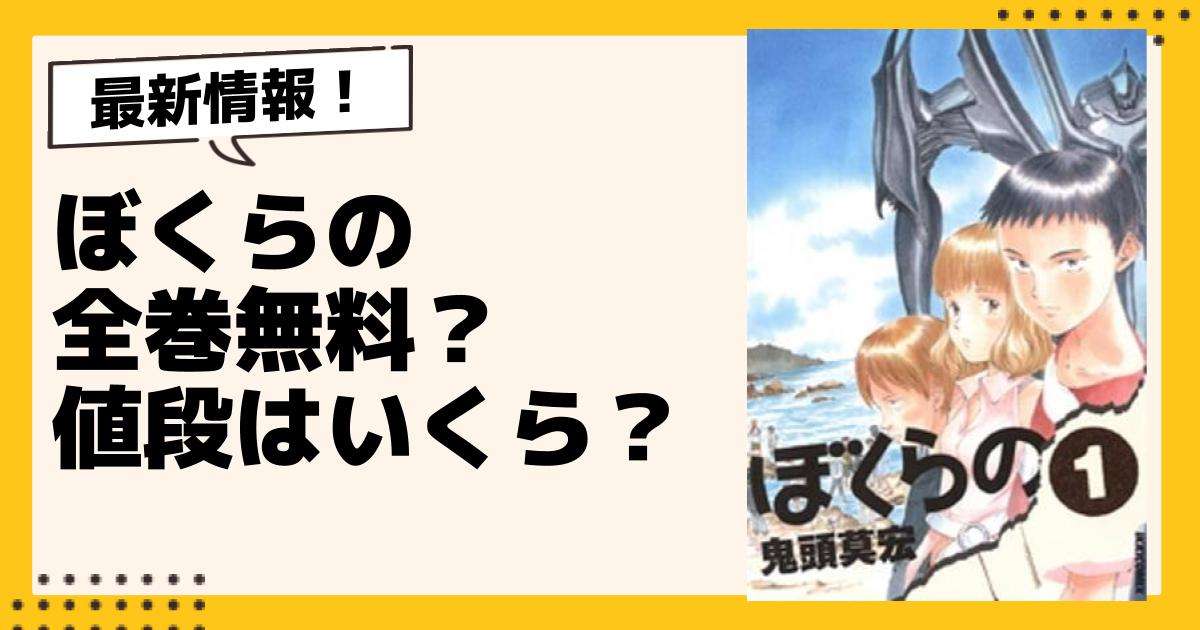 漫画「ぼくらの」は全巻無料で読める?一番多く無料で読めるサイトやアプリはどこ?全巻値段はいくら?電子書籍を全巻安く読めるキャンペーンや、コミック・単行本(新品・中古・レンタル)の最安値情報、漫画ロウ(raw)などの海賊版サイトの注意点、電子書籍からコミック・単行本まで「ぼくらの」を一番お得に楽しむ方法を徹底解説します。
