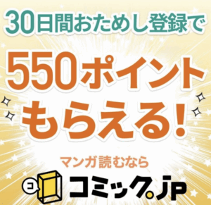 コミック.jpは、初回30日間無料+550ポイントがもらえるお得な電子書籍サービスです。