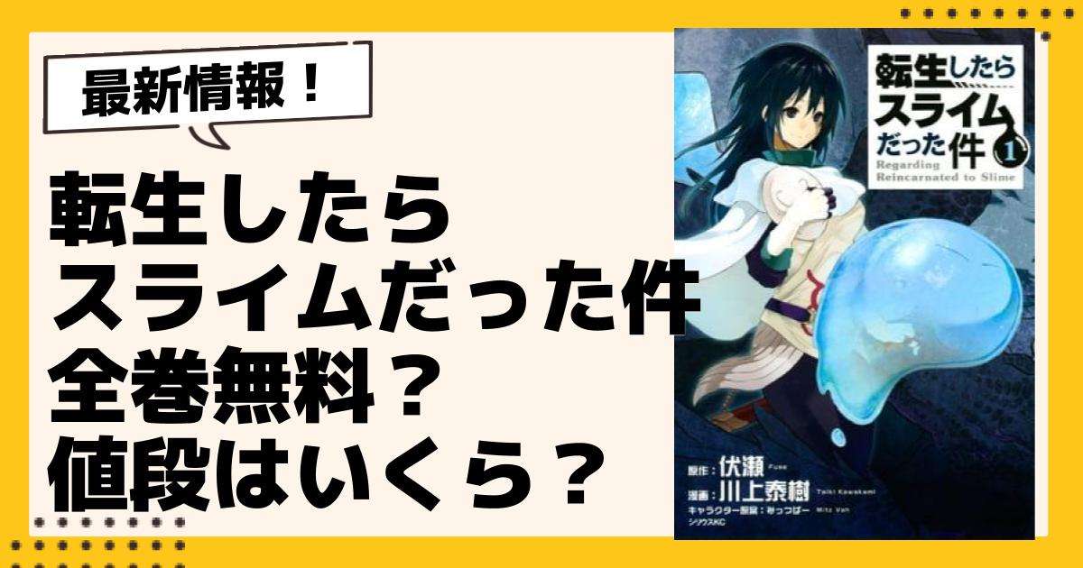 漫画「転生したらスライムだった件」は全巻無料で読むことはできません。調査したところ、初回無料期間のある読み放題(サブスク)サービスで全巻配信している電子書籍サイトや全話無料配信している漫画アプリが見つかりませんでした。各電子書籍サイトや漫画アプリの無料キャンペーンで一部無料で読むことができます。